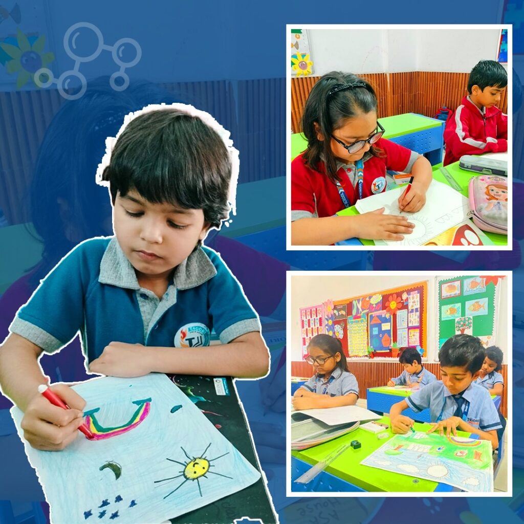 Art has always been a powerful way for children to communicate their thoughts, emotions, and imagination. Long before they learn to articulate everything in words, colours, shapes, and patterns allow them to express what they feel and observe around them. At Tagore Public School, art is not simply an activity in the timetable but an important part of a child’s growth and learning journey.