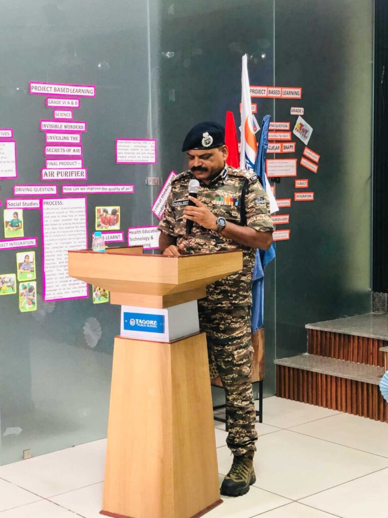 Tagore Public School, Gurugram proudly conducted its Investiture Ceremony, honouring the newly elected student council with dignity and pride. Graced by Chief Guest Shri Param Shivan (Deputy Inspector General), the event celebrated leadership, discipline, and service. The ceremony featured a ceremonial march past, inspirational speeches, cultural performances, and the formal oath-taking of student leaders. With motivational words from the Chief Guest and heartfelt addresses by the Head Boy and Head Girl, the event marked the beginning of a promising leadership journey. The program concluded with national pride and unity, echoing the school’s commitment to nurturing responsible future leaders.